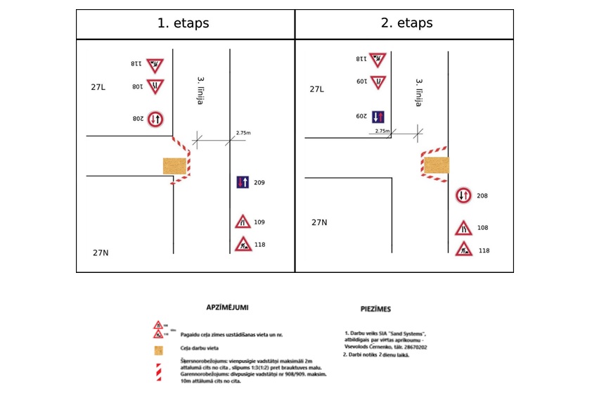 Darbu izpildītājs, atbildīgais par satiksmes organizāciju: SIA “Sand Systems”, kontakttālrunis 28670202.
