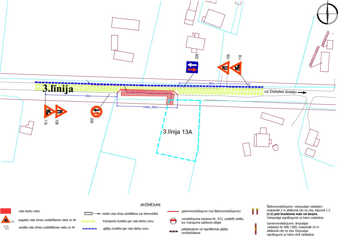 No 13. septembra līdz 20. septembrim ierobežota satiksme 3. līnijā, posmā no Nameja ielas līdz Riekstu ceļam, būvdarbu laikā – ārējās elektroapgādes izbūve, ievērojot saskaņoto Satiksmes organizācijas shēmu.