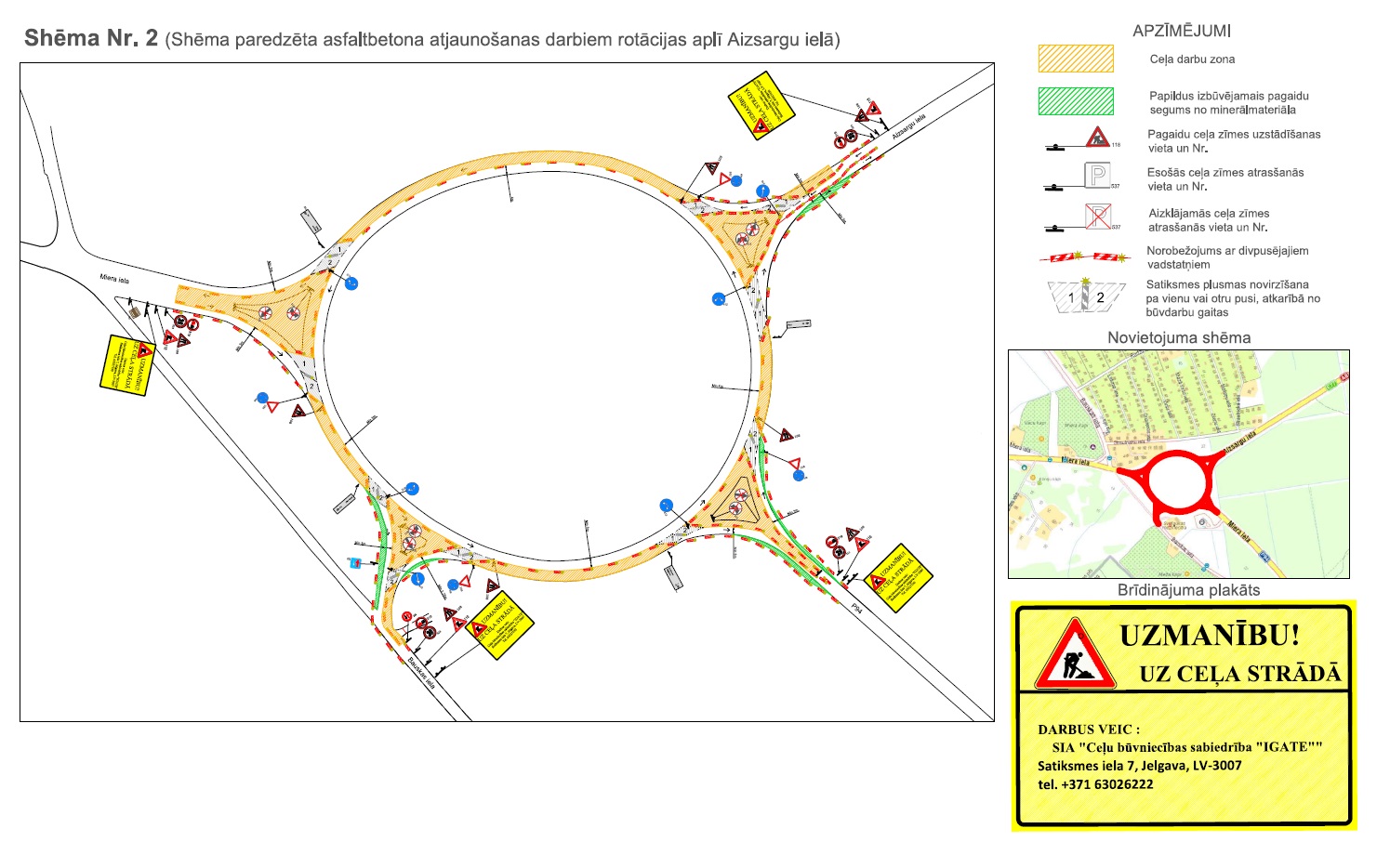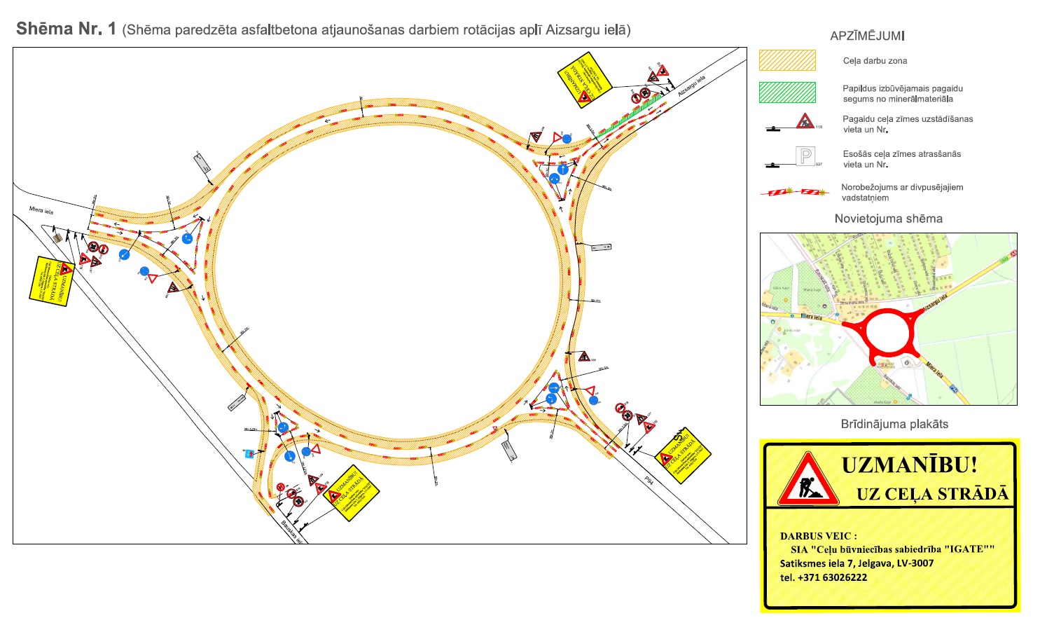 No 11. septembra līdz 31. decembrim plkst. 18.00 ierobežota satiksme Aizsargu ielas/Miera ielas rotācijas aplī, būvdarbu laikā – ceļa seguma atjaunošana, ievērojot saskaņotās Satiksmes organizācijas shēmas.