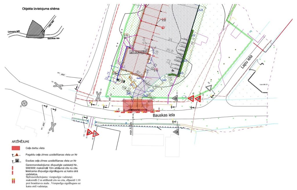 No 22. novembra līdz 22. decembrim ierobežota satiksme Bauskas ielā, posmā no Dzirnavu ielas līdz Lapu ielai, būvdarbu laikā – iebrauktuves izbūve, ievērojot saskaņoto satiksmes organizācijas shēmu.