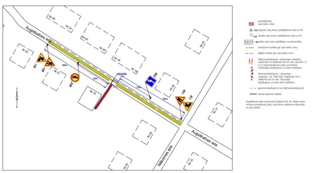 No 5. jūlija līdz 12. jūlijam ierobežota satiksme Augstkalnes ielā, posmā no Pārslu ielas līdz Nākotnes ielai, būvdarbu laikā – gāzesvada izbūve īpašumam Augstkalnes iela 19, Jelgavā, ievērojot saskaņoto Satiksmes organizācijas shēmu.