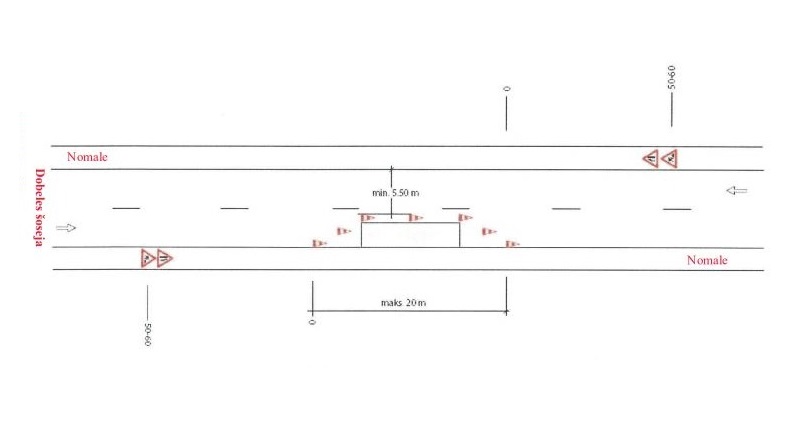 No 15. oktobra līdz 17. novembrim ierobežota satiksme caurbraucamajā ceļā nekustamā īpašuma ar kadastra Nr.09000210216 robežās, posmā no Dobeles šosejas līdz Nameja ielai, būvdarbu laikā – kabeļa tranšejas rakšana, ievērojot saskaņoto Satiksmes organizācijas shēmu.