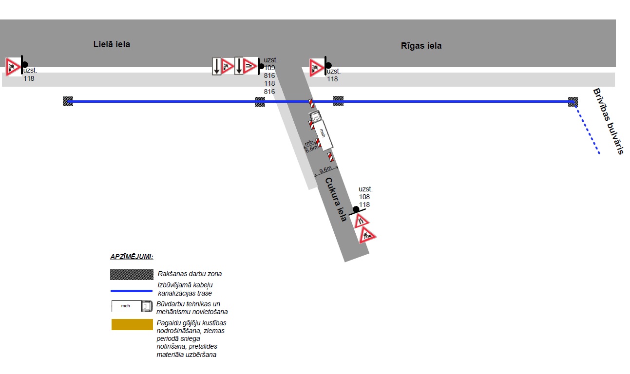 - no 26.februāra līdz 27.februārim ierobežot satiksmes kustību Cukura ielā pie Rīgas ielas;