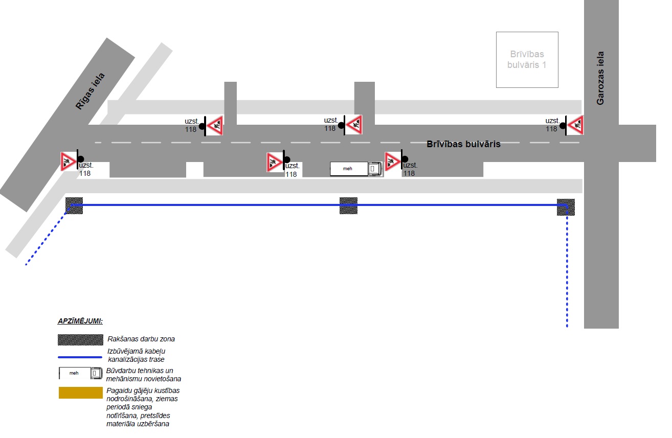 Darbu izpildītājs, atbildīgais par satiksmes organizāciju: SIA “IxCom”, kontakttālrunis 29979925. .