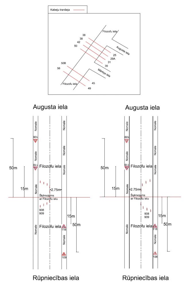 Līdz 31. jūlijam pagarināts termiņš satiksmes ierobežošanai Filozofu ielā, posmā no Rūpniecības ielas līdz Augusta ielai un Dambja ielā, posmā no Rūpniecības ielas līdz Brigaderes ielai, būvdarbu laikā – elektrotīklu rekonstrukcija un kabeļu tranšejas rakšana, ievērojot saskaņoto Satiksmes organizācijas shēmu.