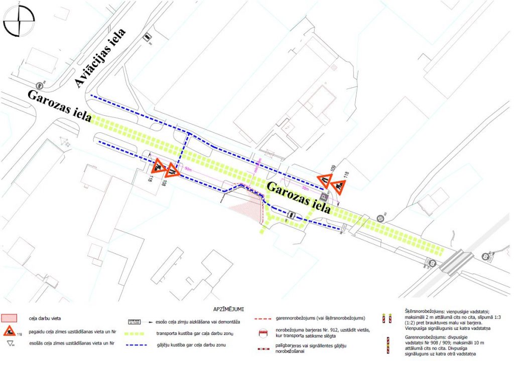 No 15. oktobra līdz 30. oktobrim ierobežota satiksme Garozas ielā, posmā no Aviācijas ielas līdz Biešu ielai, būvdarbu laikā – iebrauktuves izbūve, ievērojot saskaņoto Satiksmes organizācijas shēmu.