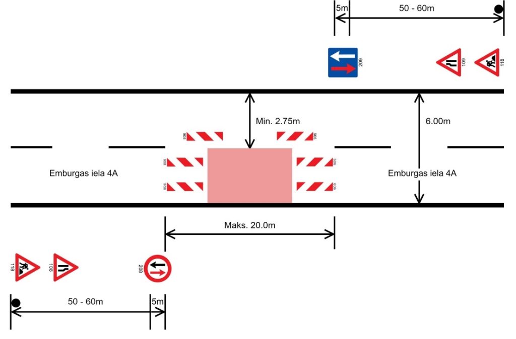 No 10. jūlija līdz 23. jūlijam ierobežota satiksme Kalnciema ceļā, posmā no Rogu ceļa līdz Kalnciema ceļš 120B, būvdarbu laikā – ūdensvada un kanalizācijas izbūve, Emburgas ielā, posmā no Birzes ielas līdz Cepļu ielai, būvdarbu laikā – ūdensvada izbūve un Jēkaba ielā, posmā no Pavasara ielas līdz Raiņa ielai, būvdarbu laikā – ūdensvada izbūve, ievērojot saskaņotās Satiksmes organizācijas shēmas.