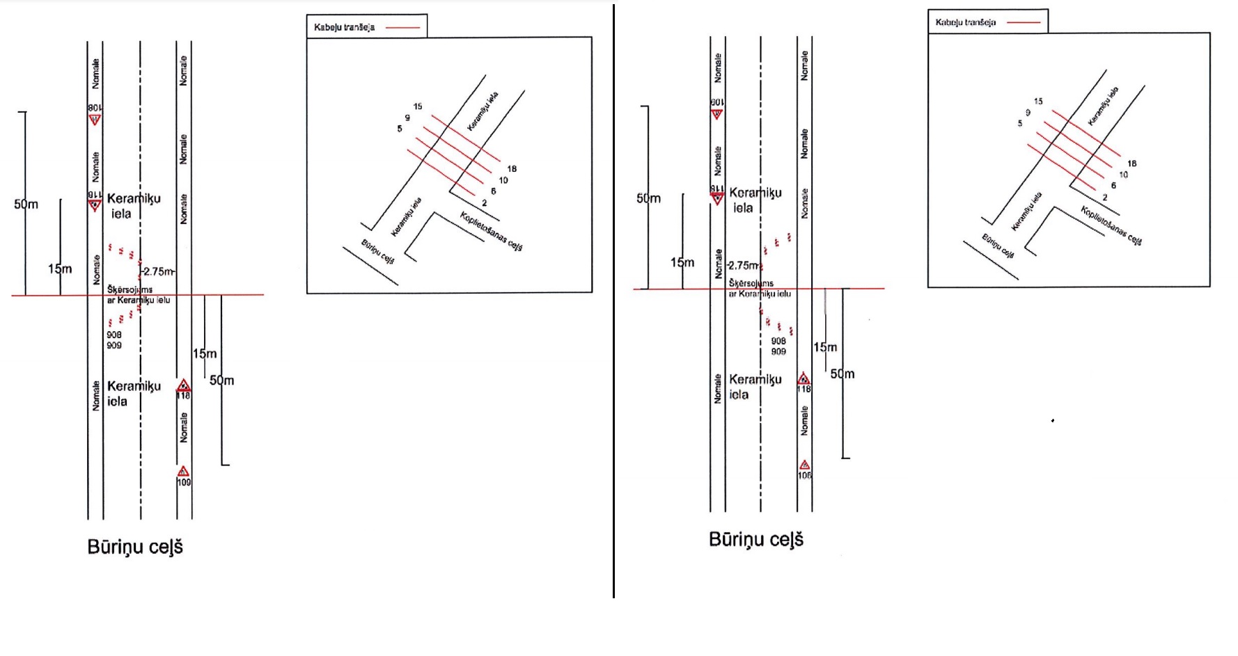 No 24. marta līdz 15. aprīlim ierobežota satiksme Keramiķu ielā, posmā no Būriņu ceļa līdz Keramiķu iela Nr. 19, būvdarbu laikā – elektrotīkla pieslēguma ierīkošana, kabeļtranšejas rakšana, ievērojot saskaņoto Satiksmes organizācijas shēmu.