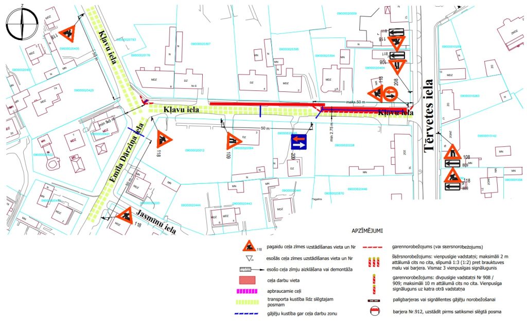 No 8. jūlija līdz 31. jūlijam ierobežota satiksme Kļavu ielā, posmā no Tērvetes ielas līdz Emīla Dārziņa ielai, būvdarbu laikā – lietus kanalizācijas tīklu izbūve, ievērojot saskaņoto satiksmes organizācijas shēmu.