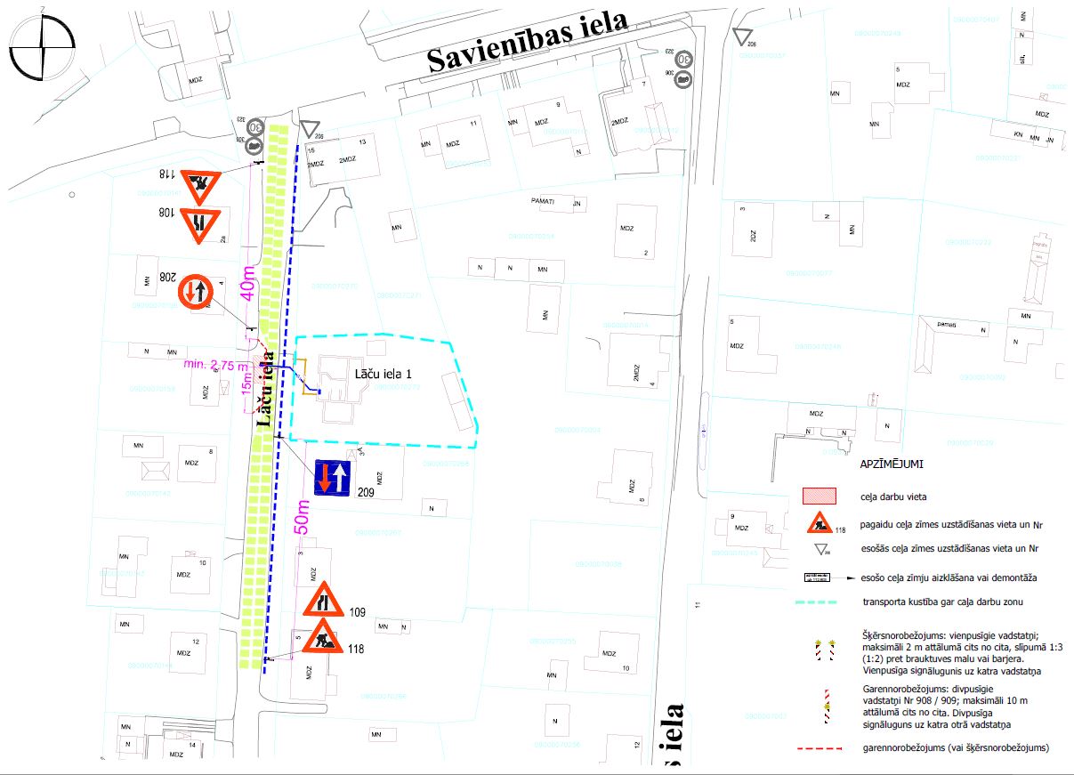 No 26. aprīļa līdz 30. aprīlim ierobežota satiksme Lāču ielā, posmā no Savienības ielas līdz Platones ielai, būvdarbu laikā – kanalizācijas un ūdensapgādes pievada izbūve, ievērojot saskaņoto Satiksmes organizācijas shēmu.