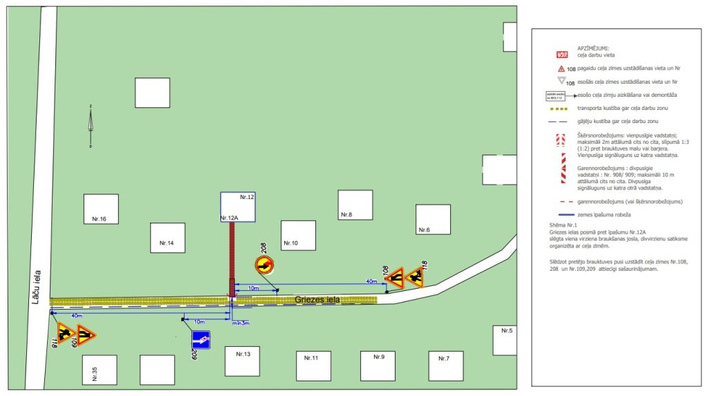 Izdoti lēmumi no 19. novembra līdz 24. novembrim ierobežot satiksmi Lāču ielā, posmā no Savienības ielas līdz Platones ielai, un no 19. novembra līdz 25. novembrim ierobežot satiksmi Griezes ielā, posmā no Lāču ielas līdz Vidus ielai.