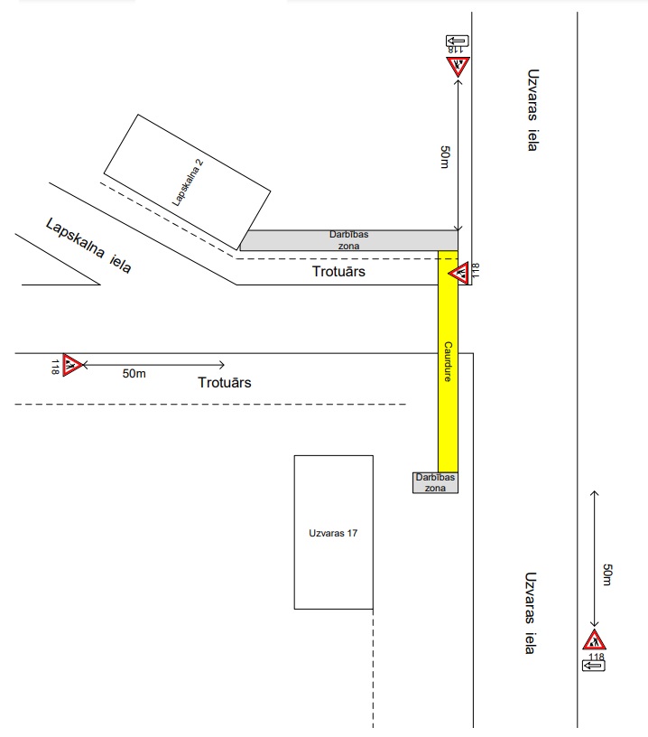 No 3. aprīļa līdz 30. aprīlim ierobežota satiksme Lapskalna ielā, posmā no Uzvaras ielas 17 līdz Lapskalna ielai 2, būvdarbu laikā – elektronisko sakaru tīkla pievada būvniecība, ievērojot saskaņoto Satiksmes organizācijas shēmu.