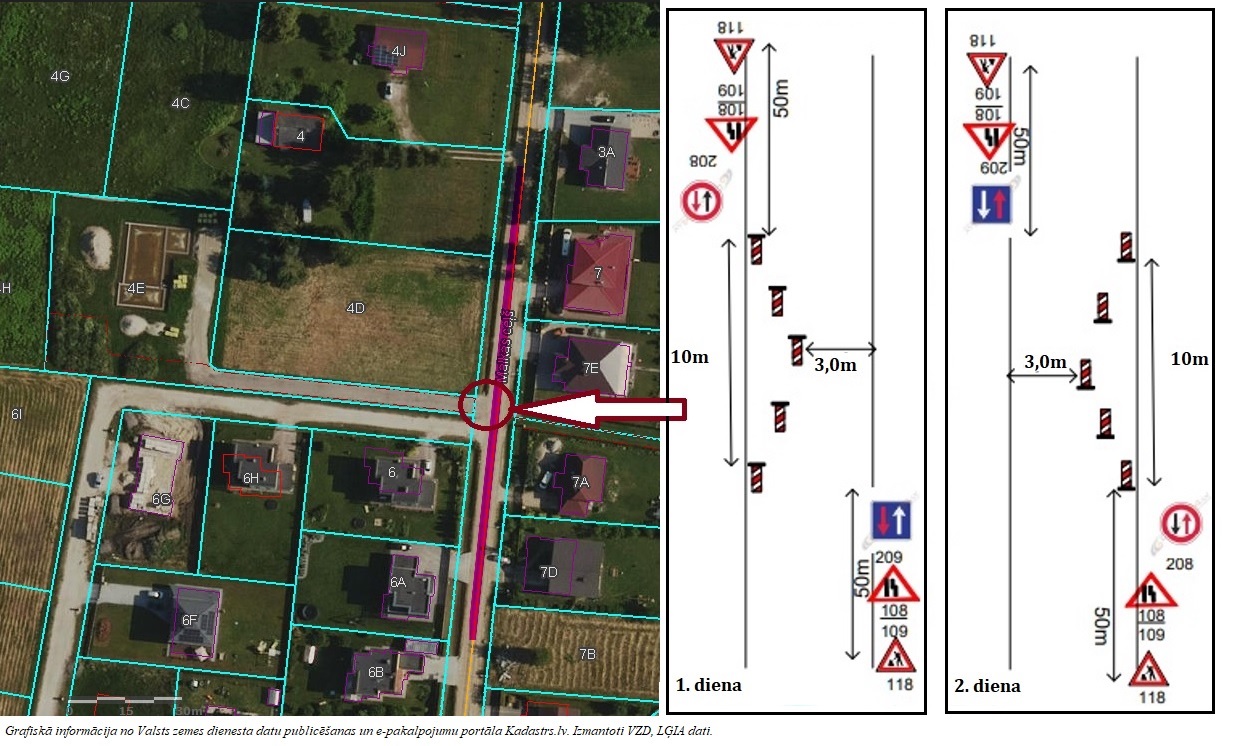 Darbu izpildītājs, atbildīgais par satiksmes organizāciju: SIA “GHP”, kontakttālrunis 25625661.