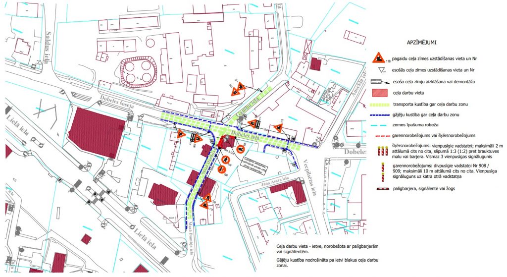 Līdz 30.septembrim ierobežota satiksme Mazā Dambja ielā, posmā no Dobeles šosejas līdz Lielajai ielai un slēgta gājēju kustība Mazā Dambja ielā, posmā no Dobeles šosejas līdz Lielajai ielai un Dobeles ielā gar ēku Mazā Dambja iela Nr.1, būvdarbu laikā – jumta seguma nomaiņa ēkai Mazā Dambja iela Nr.1., ievērojot saskaņoto Satiksmes organizācijas shēmu.