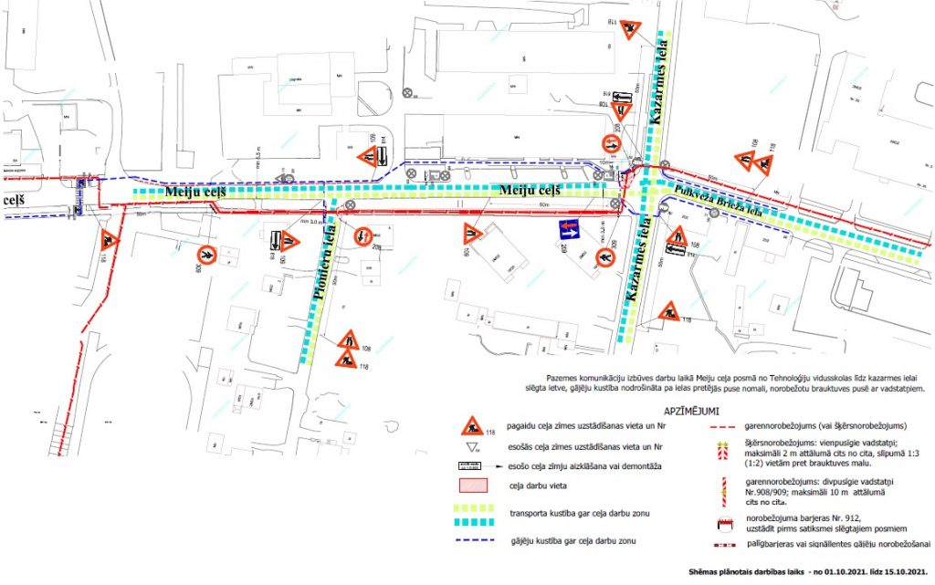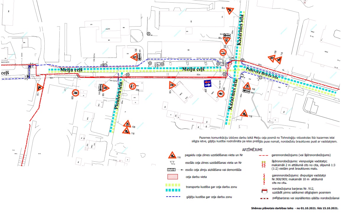 Turpinās elektronisko sakaru tīklu izbūve Meiju ceļā. Noteiktas izmaiņas satiksmes ierobežojumiem posmā no Kazarmes ielas līdz Pionieru ielai, ievērojot saskaņoto Satiksmes organizācijas shēmu.
