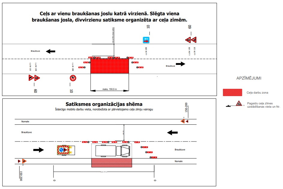 Darbu izpildītājs, atbildīgais par satiksmes organizāciju: SIA “CBS Igate”, kontakttālrunis 4010341665, atbildīgā persona par satiksmes organizāciju 26399983.