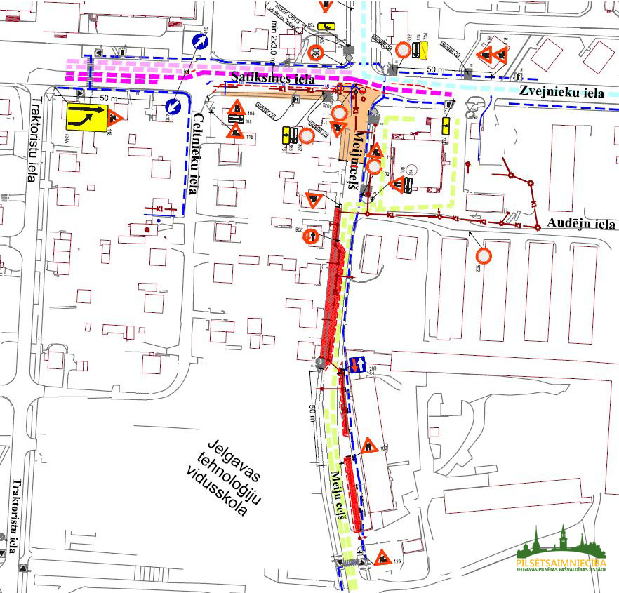 Pagarinājums. No 2. septembra līdz 30. septembrim ierobežota satiksme Meiju ceļā, posmā no Satiksmes ielas līdz Pionieru ielai, būvdarbu laikā – ūdens un kanalizācijas tīklu ierīkošana, ievērojot saskaņoto Satiksmes organizācijas shēmu.