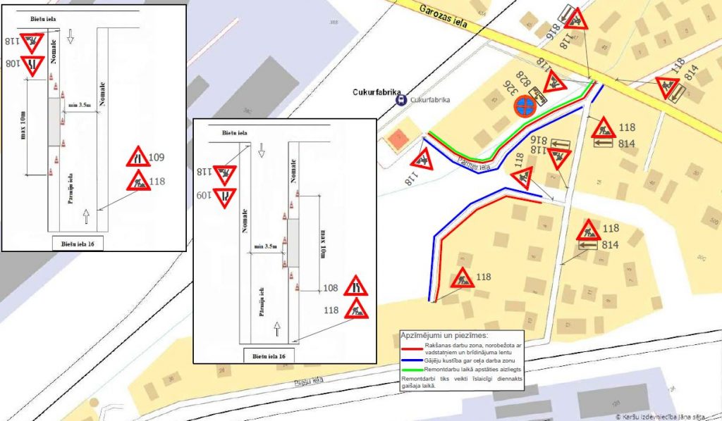 Ierobežota satiksme Pārmiju ielā, Vītolu ceļā, Līču ielā, Emburgas ielā, Birzes ielā un Cepļu ielā