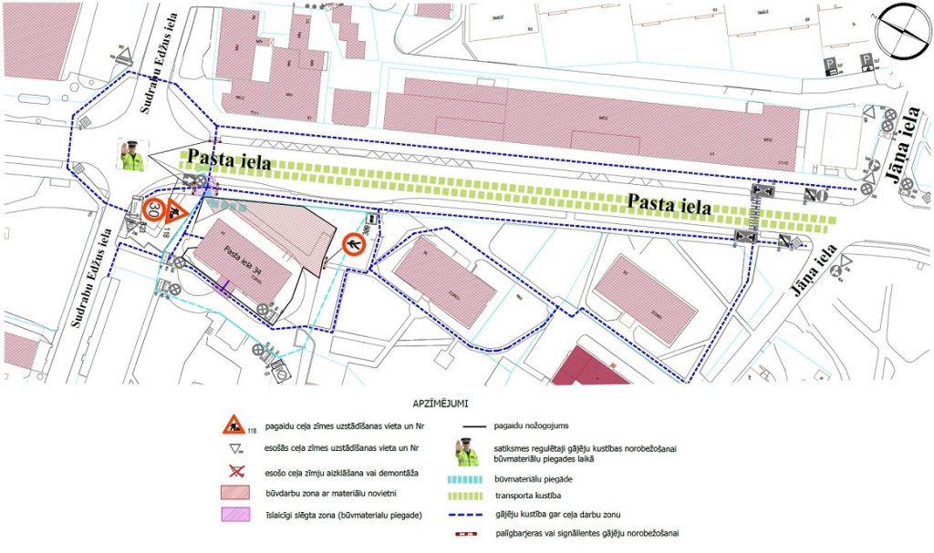 No 8. aprīļa līdz 26. decembrim ierobežota satiksme Pasta ielā, posmā no Sudrabu Edžus ielas līdz Jāņa ielai, būvdarbu laikā – ēkas Pasta iela Nr. 34 fasādes atjaunošana, ievērojot saskaņoto Satiksmes organizācijas shēmu.