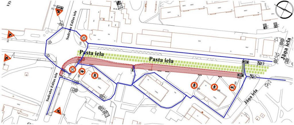 No 7. jūnija līdz 23. jūlijam ierobežota satiksme Pasta ielā, posmā no Sudrabu Edžus ielas līdz Jāņa ielai (labajā pusē), būvdarbu laikā – ietves seguma atjaunošana, ievērojot saskaņoto Satiksmes organizācijas shēmu.