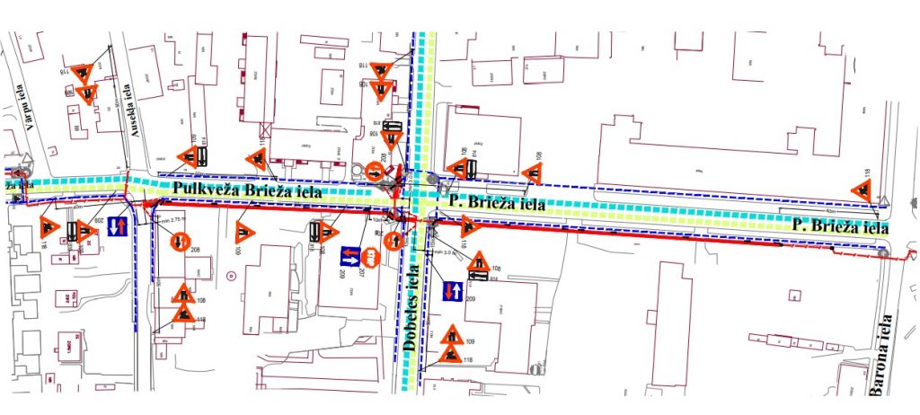 Turpinās elektronisko sakaru tīklu izbūve Pulkveža Brieža ielā. No 1. novembra noteiktas izmaiņas satiksmes ierobežojumiem posmā no Ausekļa ielas līdz Lielajai ielai, ievērojot saskaņoto Satiksmes organizācijas shēmu.