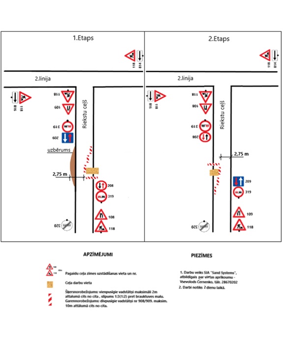 No 30. marta līdz 31. martam ierobežota satiksme Riekstu ceļā, posmā no 2.līnijas līdz Ošu ceļam, būvdarbu laikā – ūdensvada un kanalizācijas tīkla būvniecība, ievērojot saskaņoto Satiksmes organizācijas shēmu.