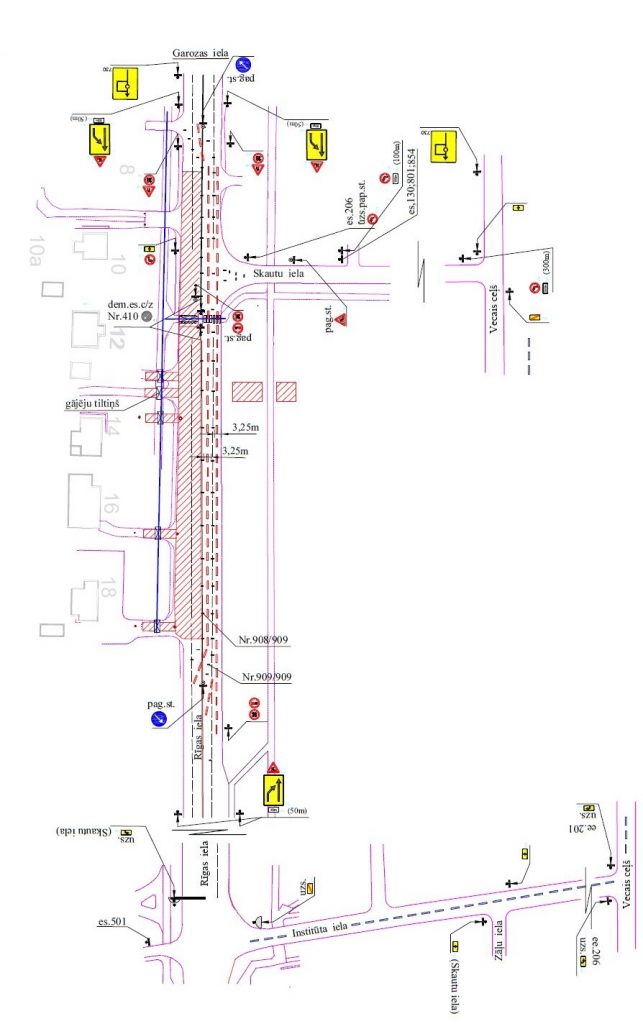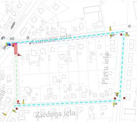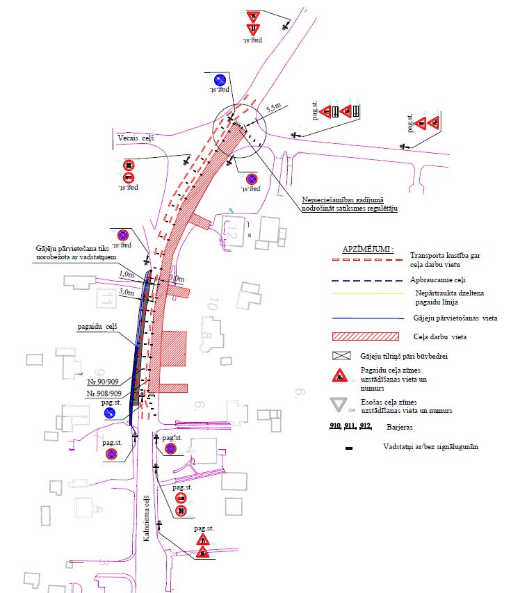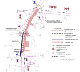 Satiksme ierobežota būvdarbu laikā – ūdens un kanalizācijas tīklu ierīkošana, ievērojot saskaņotās Satiksmes organizācijas shēmas.