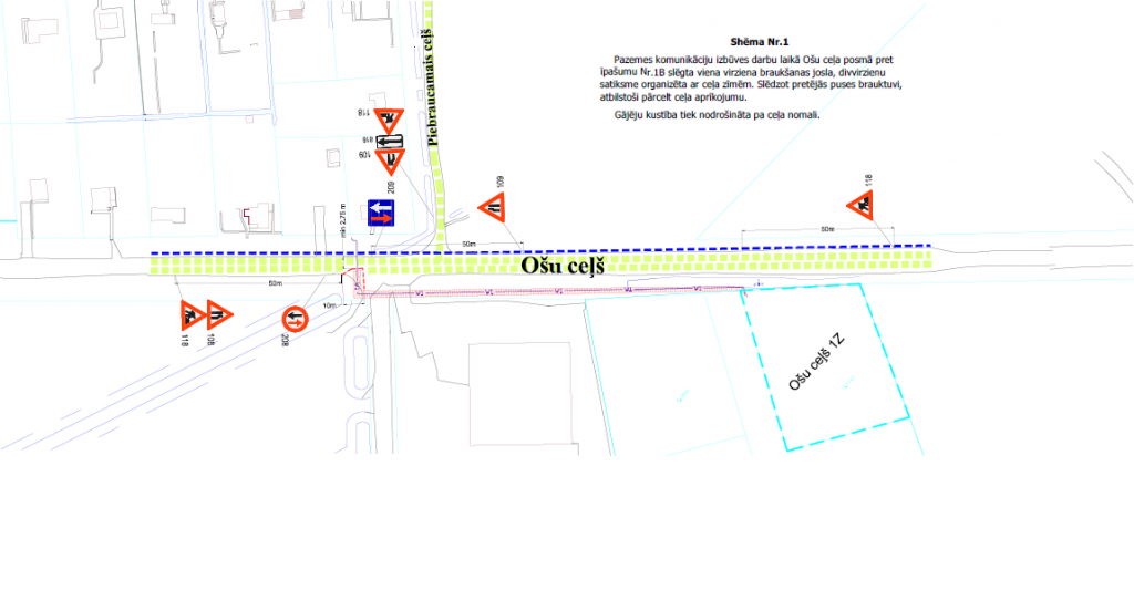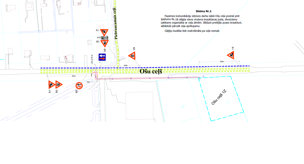 Satiksmes ierobežojumi noteikti būvdarbu laikā – ārējās elektroapgādes izbūve, ievērojot saskaņotās Satiksmes organizācijas shēmas.