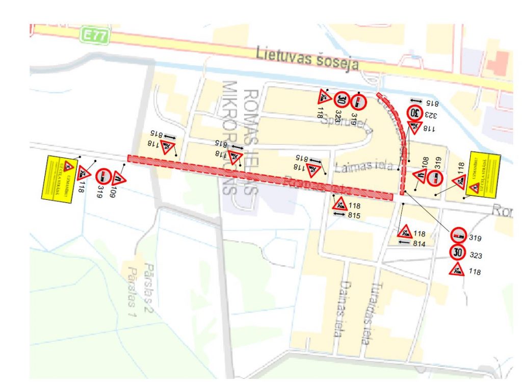 Ierobežota satiksme Romas ielā, Zemeņu ielā un Straumes ielā