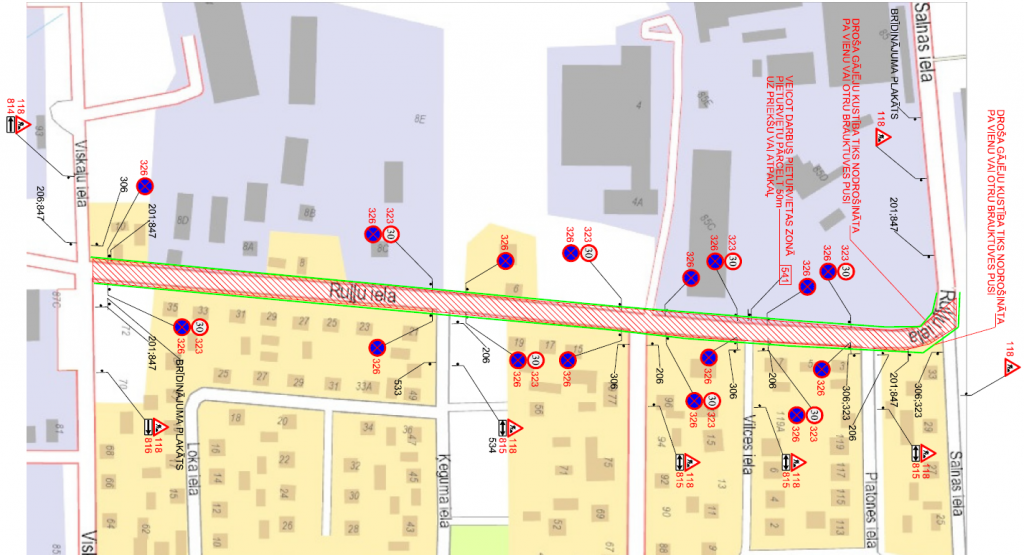 Slēgta satiksmes kustība Ošu ceļā (no Riekstu ceļa līdz 1.līnijai, pagarinājums) un ierobežota satiksmes kustība Ošu ceļā (no 1.līnijas līdz Atmodas ielai)