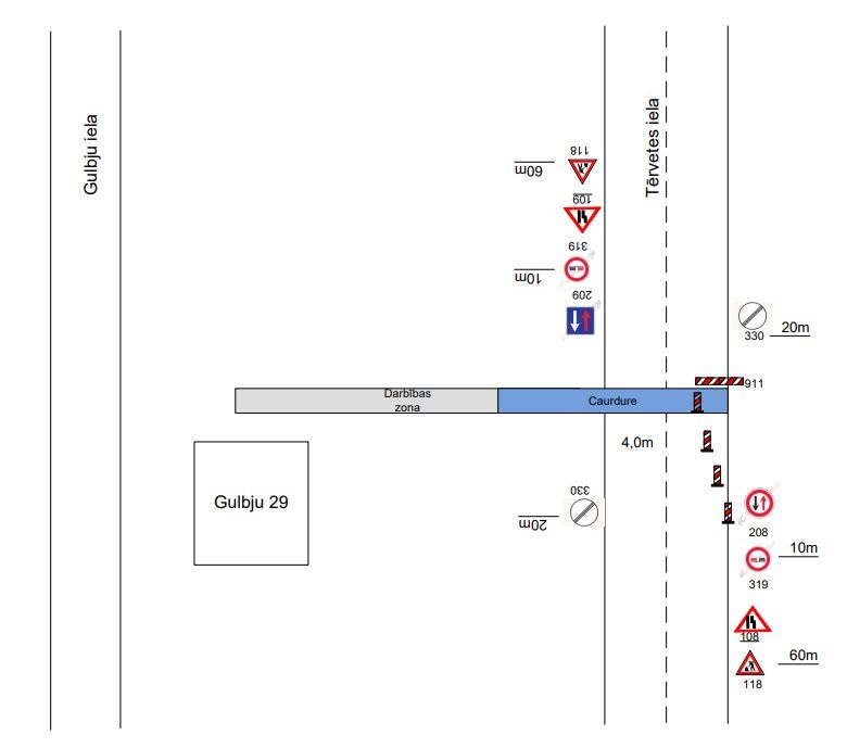 No 16. jūnija līdz 18. jūnijam ierobežota satiksme Tērvetes ielā, posmā no Zvanu ielas līdz Zaļumu ielai, būvdarbu laikā – ūdensapgādes un sadzīves kanalizācijas pievada izbūve, ievērojot saskaņoto Satiksmes organizācijas shēmu.