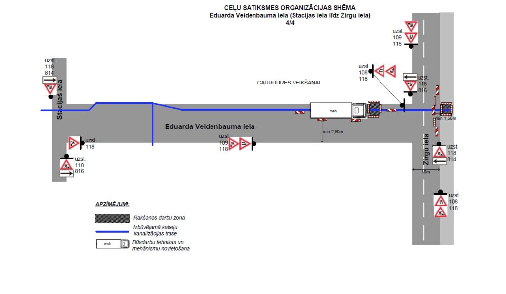 4.maijā ierobežot satiksmes un gājēju kustību Zirgu ielā krustojumā ar Eduarda Veidenbauma ielu.