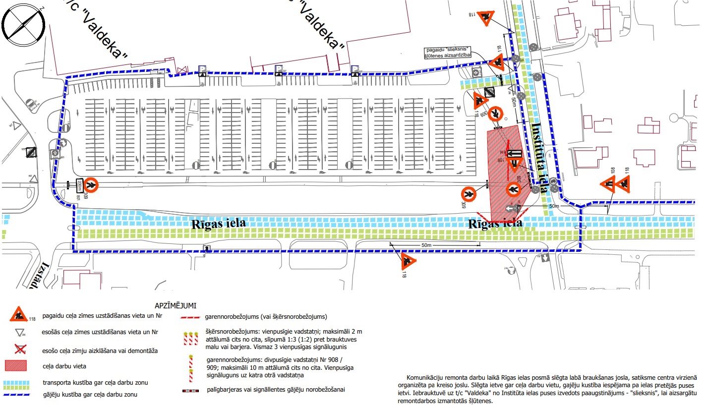 Izdots lēmums līdz 30. jūnijam plkst. 17:00 ierobežot satiksmi un slēgt gājēju kustību Institūta ielā un Rīgas ielā (Institūta ielas un Rīgas ielas krustojumā tirdzniecības centra “Valdeka” pusē).