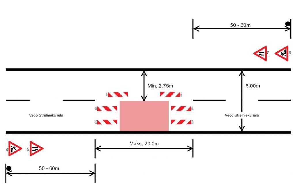 No 11.augusta līdz 14.augustam ierobežota satiksme Veco Strēlnieku ielā, posmā no Cukura ielas līdz Ziedoņa ielai, būvdarbu laikā – kanalizācijas izbūve, ievērojot saskaņoto Satiksmes organizācijas shēmu.