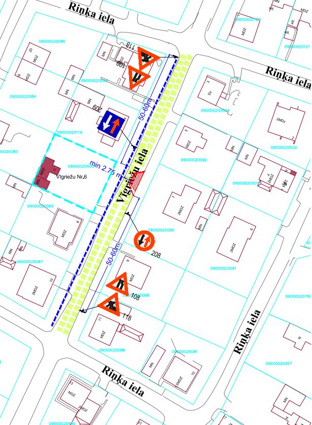 Slēgta satiksmes kustība Ošu ceļā (no Riekstu ceļa līdz 1.līnijai, pagarinājums) un ierobežota satiksmes kustība Ošu ceļā (no 1.līnijas līdz Atmodas ielai)