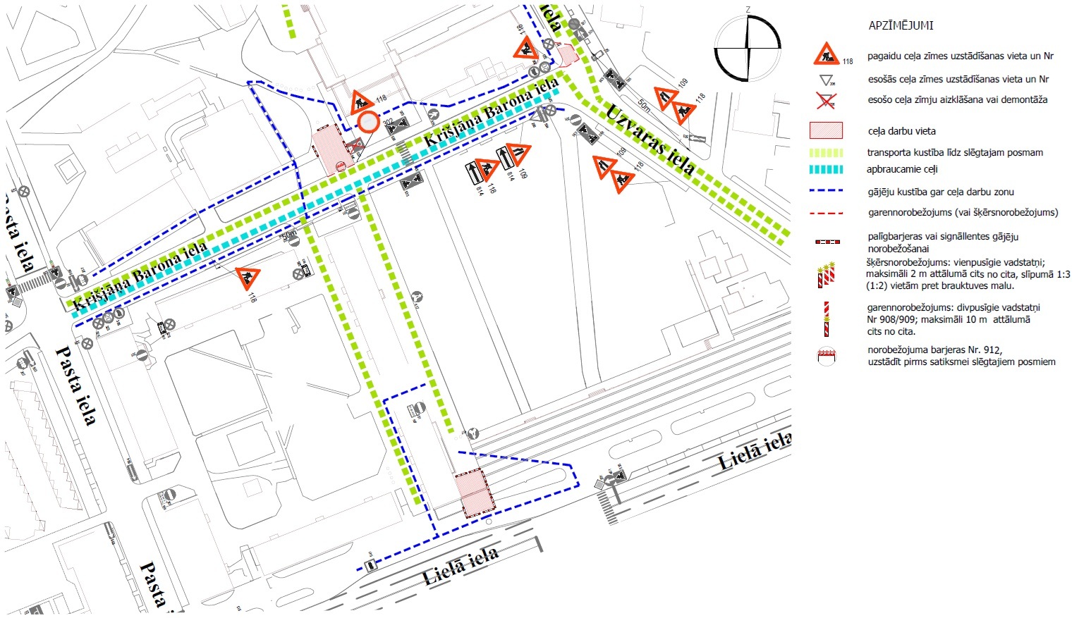 Darbu izpildītājs, atbildīgais par satiksmes organizāciju: SIA “Aarsleff Baltic”, kontakttālrunis 26128212.