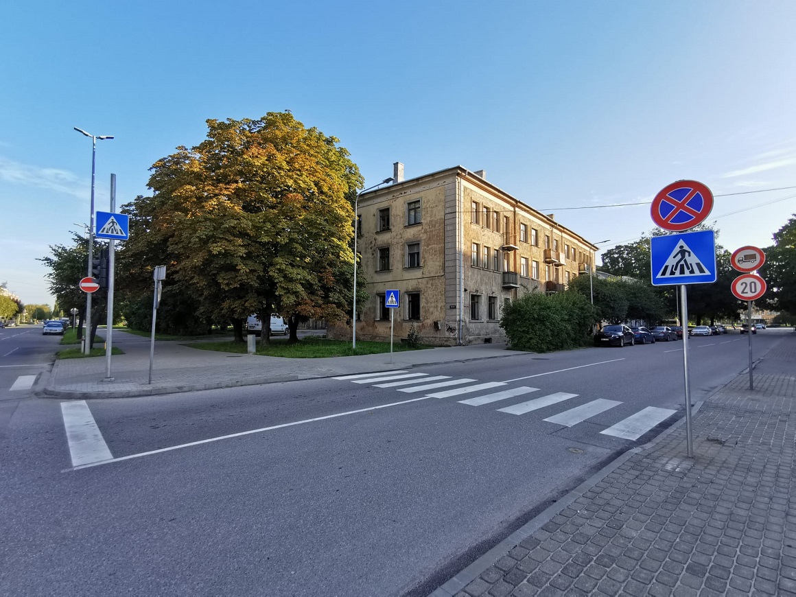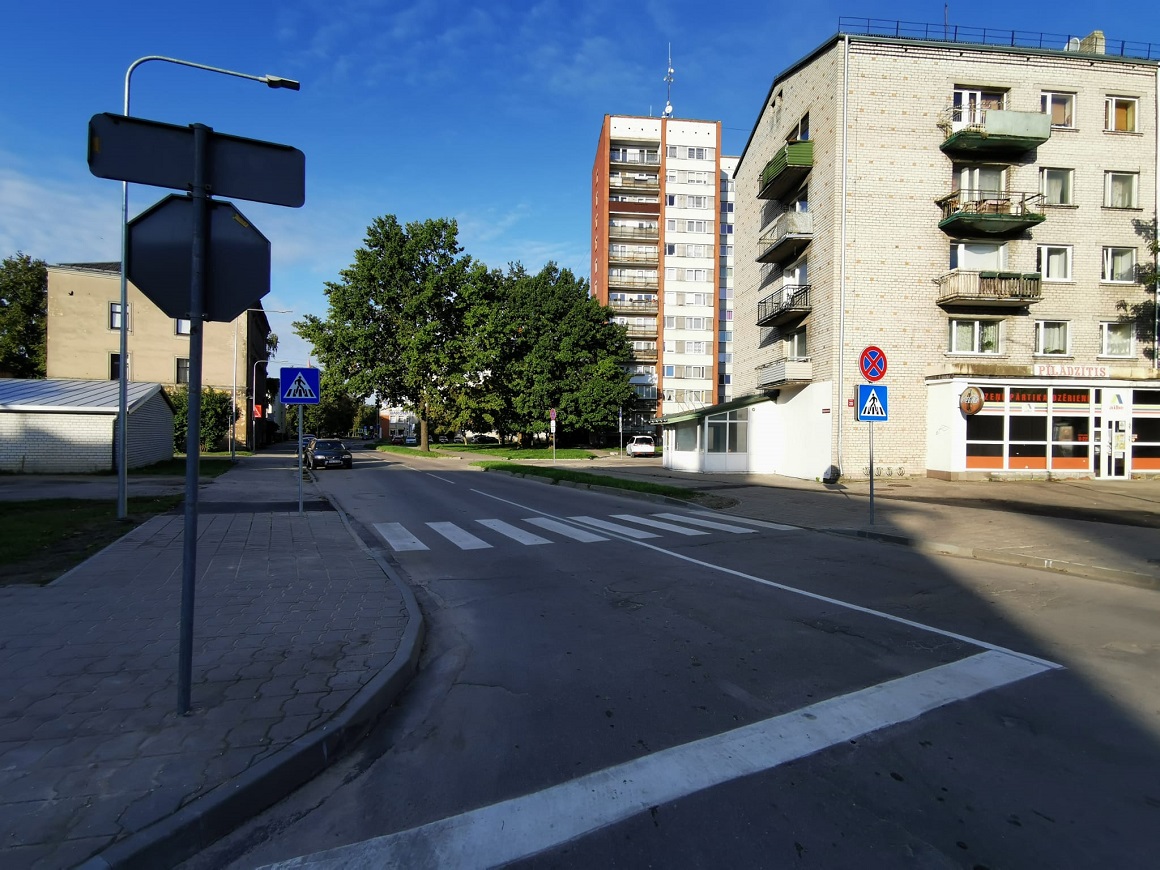 Izveidojot gājēju pārejas, pārbūvētas ielu apmales un ietvju bruģa segums, ieklāts horizontālais marķējums un uzstādītas ceļa zīmes.