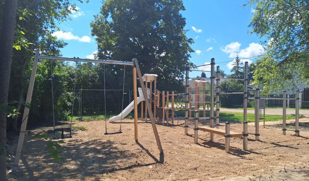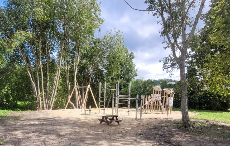 Laukumā ar smilts segumu izvietotas divas rotaļu iekārtas, kas paredzētas bērniem no 6 līdz 14 gadiem, divvietīgas šūpoles ar diviem bērnu sēdekļiem bērniem līdz 14 gadiem, kā arī viena vingrošanas iekārta, kas piemērota jauniešiem no 14 gadiem. Visām iekārtām ir veikta drošības pārbaude atbilstoši noteiktajām prasībām.