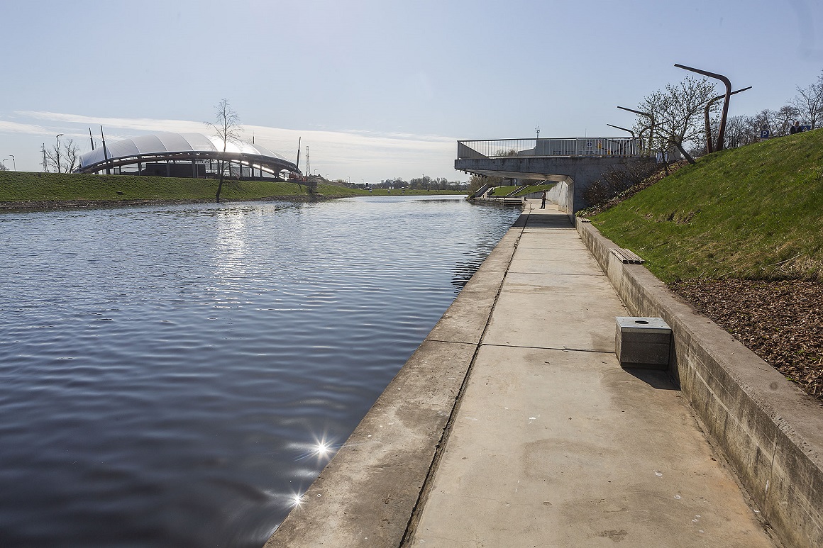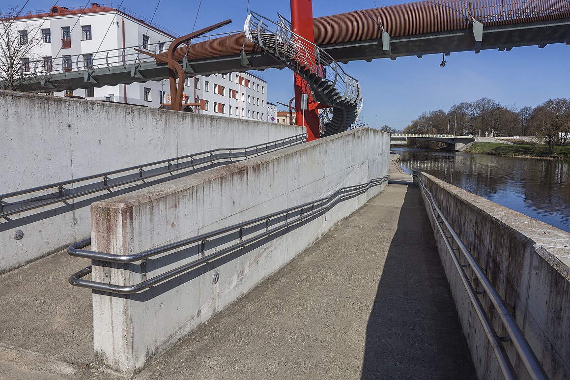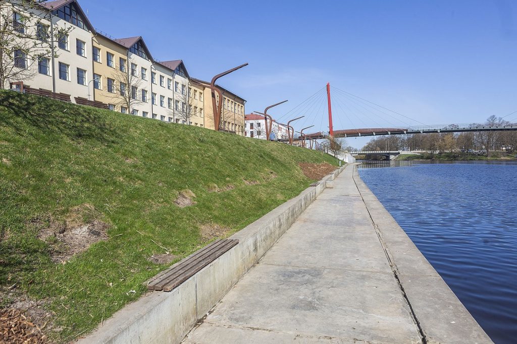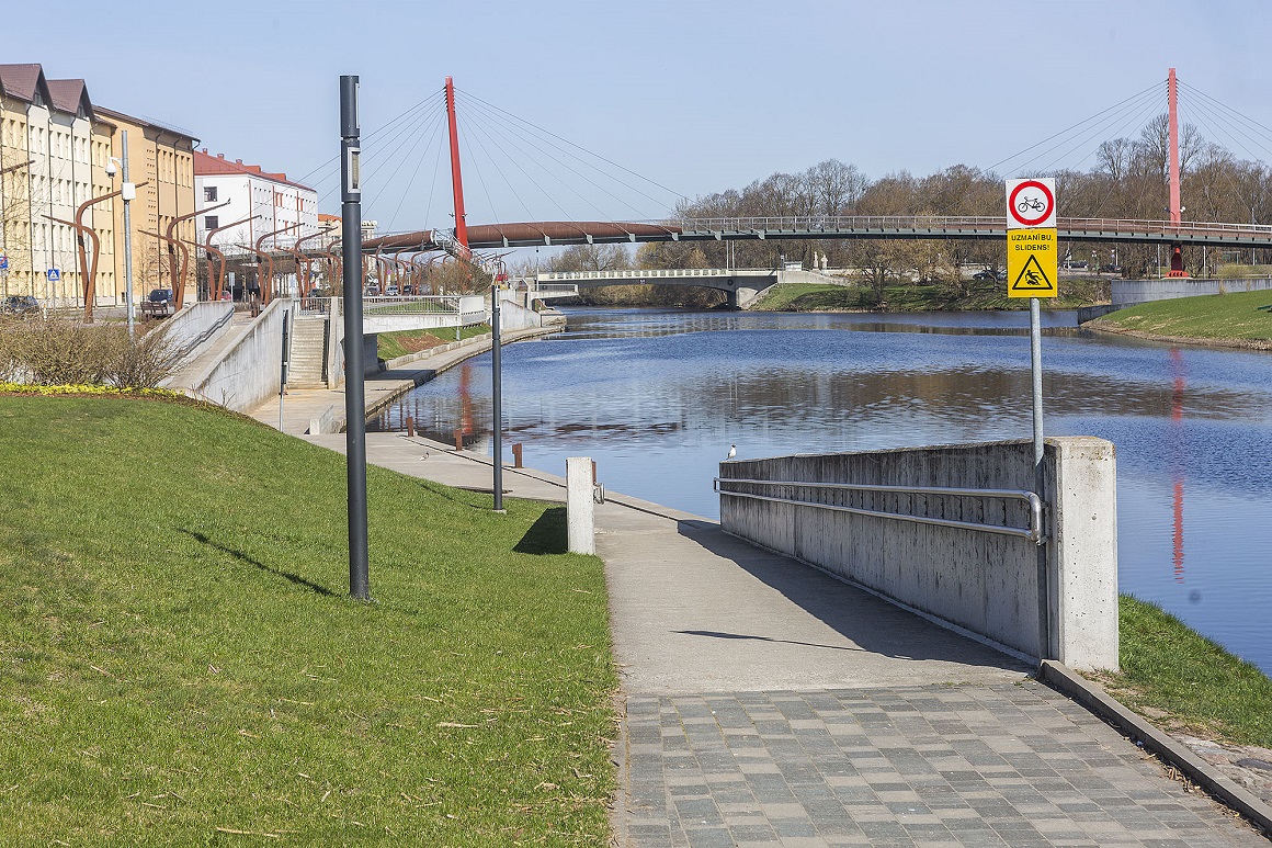 Jāņa Čakstes bulvāra lejas promenāde Driksas upes krastā pēc tīrīšanas un mazgāšanas aizvadītajās brīvdienās ir atvērta pastaigām.