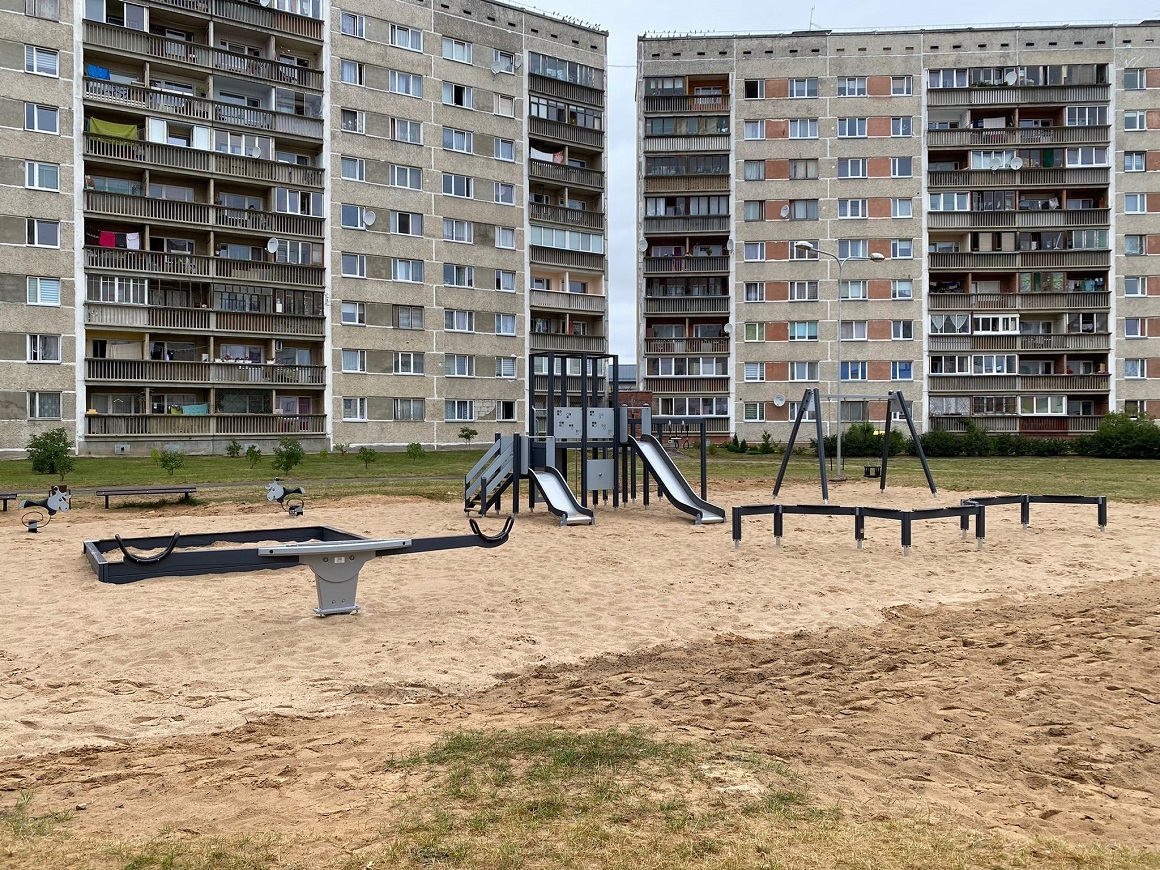 Satiksmes ielā 33 ir atjaunots bērnu rotaļu laukums. Augusta vidū demontētas vecās iekārtas un nu to vietā uzstādītas jaunas.