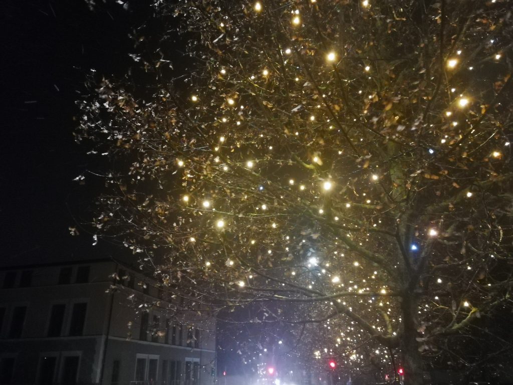 Vakar, Pirmās adventes vakarā, iedegta pilsētas galvenā egle. Līdz ar svētku gaidīšanas prieku Jelgavā daudzviet iemirdzējušās LED virtenes un dažādi gaismas dekori.