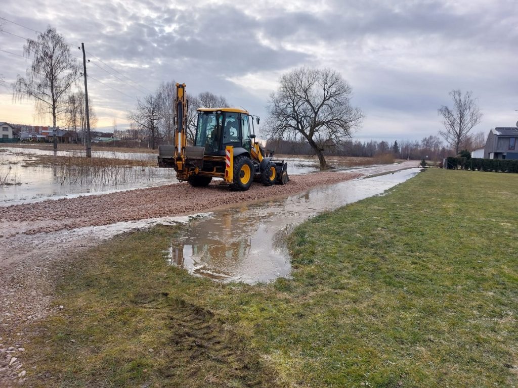 Joprojām pilsētā ir applūdušas teritorijas; veikta Kūliņu ceļa brauktuves piebēršana