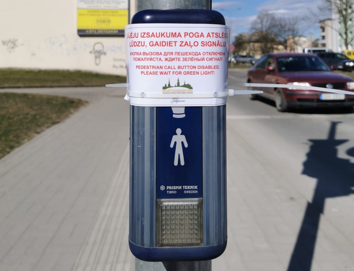 Šovakar, 31. martā, pilsētas luksofori ar gājēju izsaukuma pogām tiks pārslēgti fiksētā režīmā. Izsaukuma poga nedarbosies un būs jāuzgaida zaļais signāls, kas pārslēgsies automātiski. Pie luksoforiem šodien un rīt tiks izvietota informācija, pārklājot izsaukuma pogas. Pilsētā kopumā ir 194 gājēju izsaukuma pogas. Aicinām būt saprotošiem un rūpēties par savu un tuvinieku veselību un drošību!