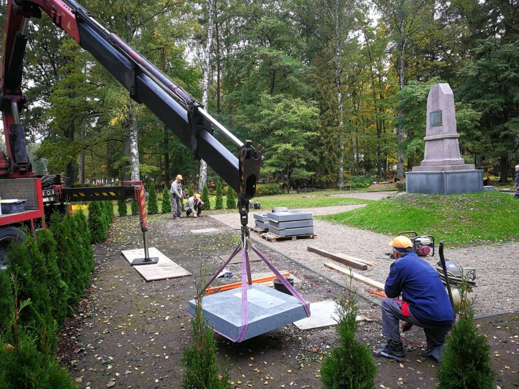 Meža kapsētā stēlu kalšanas, gravēšanas un uzstādīšanas darbus veica SIA “Akmens apstrādes centrs AKM” un piegulošās teritorijas labiekārtošanu – SIA “KULK”. Projekta kopējās izmaksas sastāda 20 917,78 eiro.