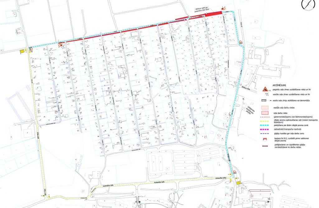 Slēgta satiksmes kustība Ošu ceļā (no Riekstu ceļa līdz 1.līnijai, pagarinājums) un ierobežota satiksmes kustība Ošu ceļā (no 1.līnijas līdz Atmodas ielai)