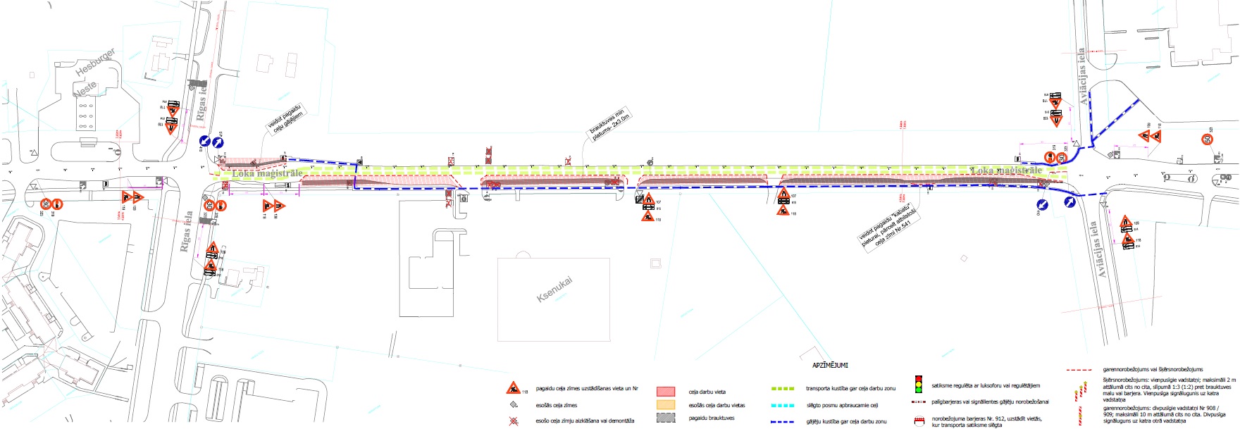 - Loka maģistrāles posmā no Rīgas ielas līdz Aviācijas ielai.