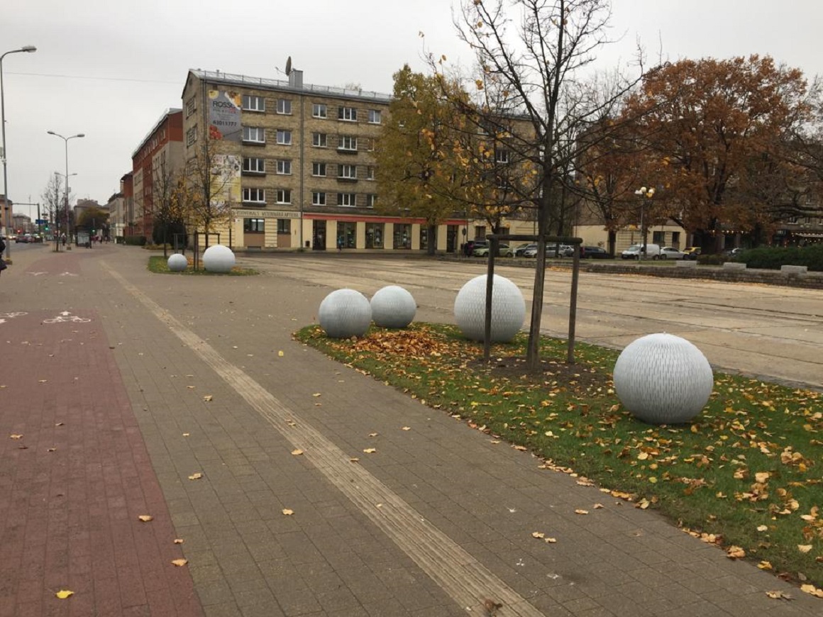 - jauns dekors ažūras sfēras no fibrobetona ar LED apgaismojumu Hercoga Jēkaba laukumā zaļajās zonās;