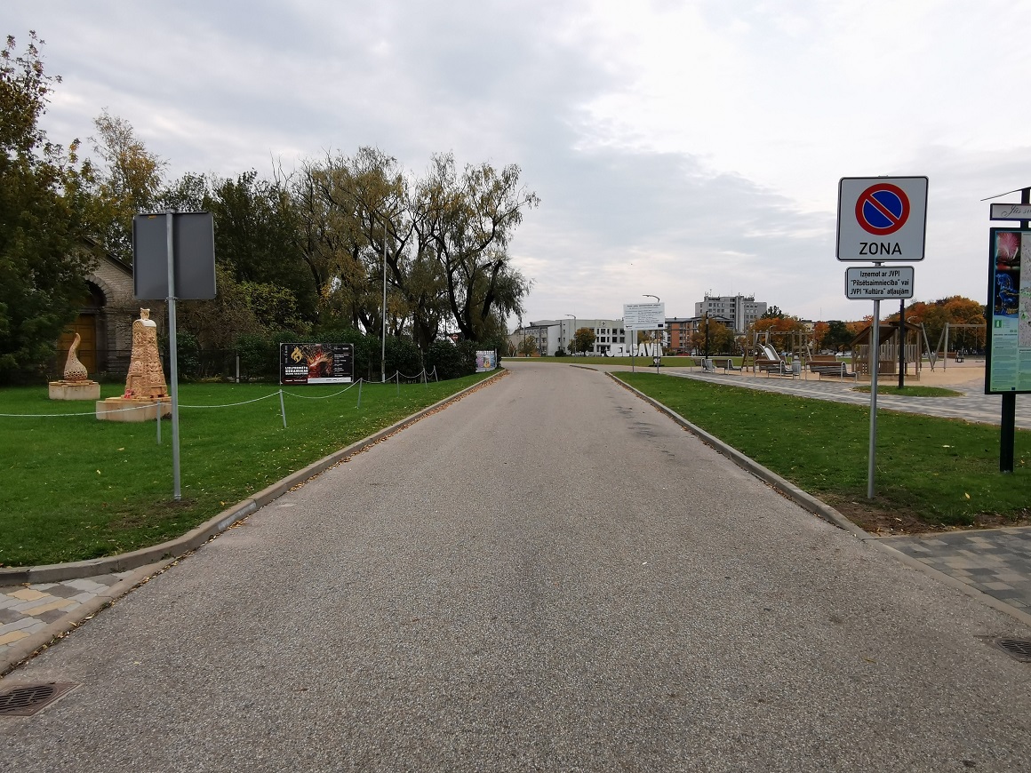 - Lai ierobežotu privāto transportlīdzekļu kustību un auto novietošanu Pasta salas teritorijā, uzstādīta ceļa zīme Nr. 523 “Stāvēšanas aizlieguma zona” ar papildzīmi Nr. 849 “Pārējā papildinformācija – Izņemot ar JVPI “Pilsētsaimniecība” vai JVPI “Kultūra” atļaujām” un ceļa zīme Nr. 524 “Stāvēšanas aizlieguma zonas beigas”.