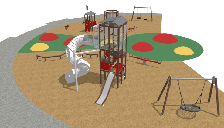 Bērnu rotaļu laukums Ozolskvērā veidots divās daļās, kas savstarpēji atdalītas ar gumijas seguma laukumu. Vienā daļā jau izbūvēti pamati rotaļu iekārtai “Skyline Town” un rotaļu kompleksam “Stārķa ligzda”. Darbi tiks turpināti ar iekārtas “Līdzsvara taka” un divvietīgas šūpoles balansiera uz atsperes uzstādīšanu. Otrajā daļā, tajā tiks demontētas vecās rotaļu iekārtas, to vietā uzstādot jaunas – “Rotaļu kompleksu Mazajiem”, divas atsperes rotaļas “Alnis”, kāpelēšanas komplekss, kā arī divvietīgas šūpoles. Rotaļu laukumā tiks atjaunots arī smilts segums.