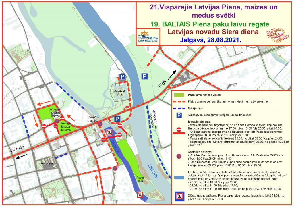 2021. gada 28. augustā notiks 21. Vispārējie LATVIJAS Piena, Maizes un Medus svētki, 19. BALTAIS Piena paku laivu regate, Latvijas novadu Siera diena, kā arī sacensības paraburāšanā “Ja grib, tad var” un Jelgavas junioru kausa izcīņa burāšanā. Satiksme tiks organizēta saskaņā ar pievienoto shēmu.